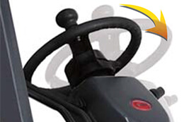 Smaller 300mm steering wheel easy to operate and reduce operator's arm and shoulder's workload. The new axle provides wider steering angles to 80 degree and reduces to a smaller turning radius.